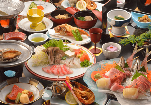 「石花海」とは、伊豆の海底に広がる海の丘のこと。豊かな浅瀬はお魚たちの格好の棲み家です。当館にも稲取漁港で水揚げされた美味しい魚たちが集まります。名物の漁師焼きをはじめ、海の幸をゆっくり味わってください。