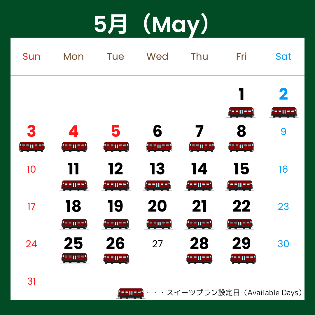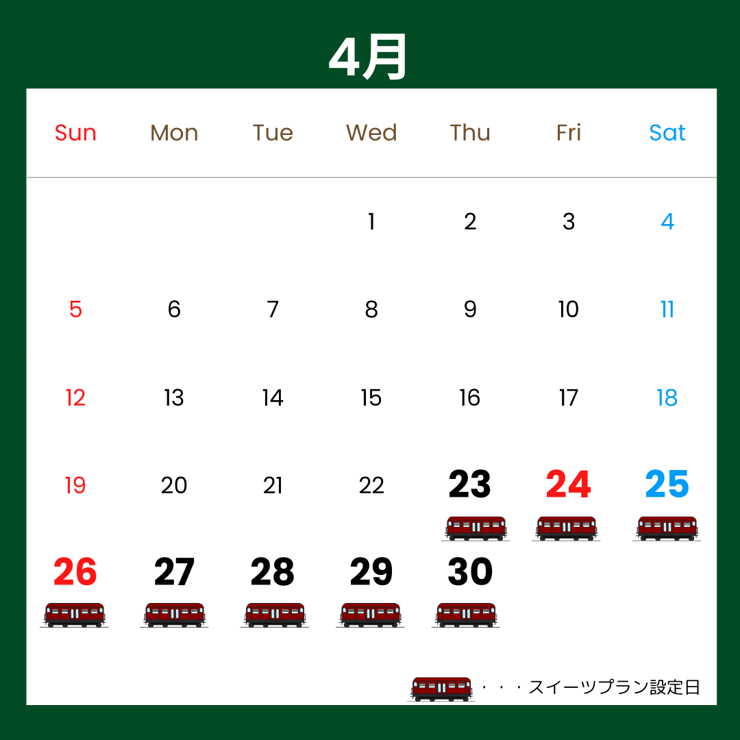 ⋆特別車両(1号車)では、スイーツをお楽しみいただくため、ペットとのご乗車はお断りしております。(ゲージに入れていただいても不可)