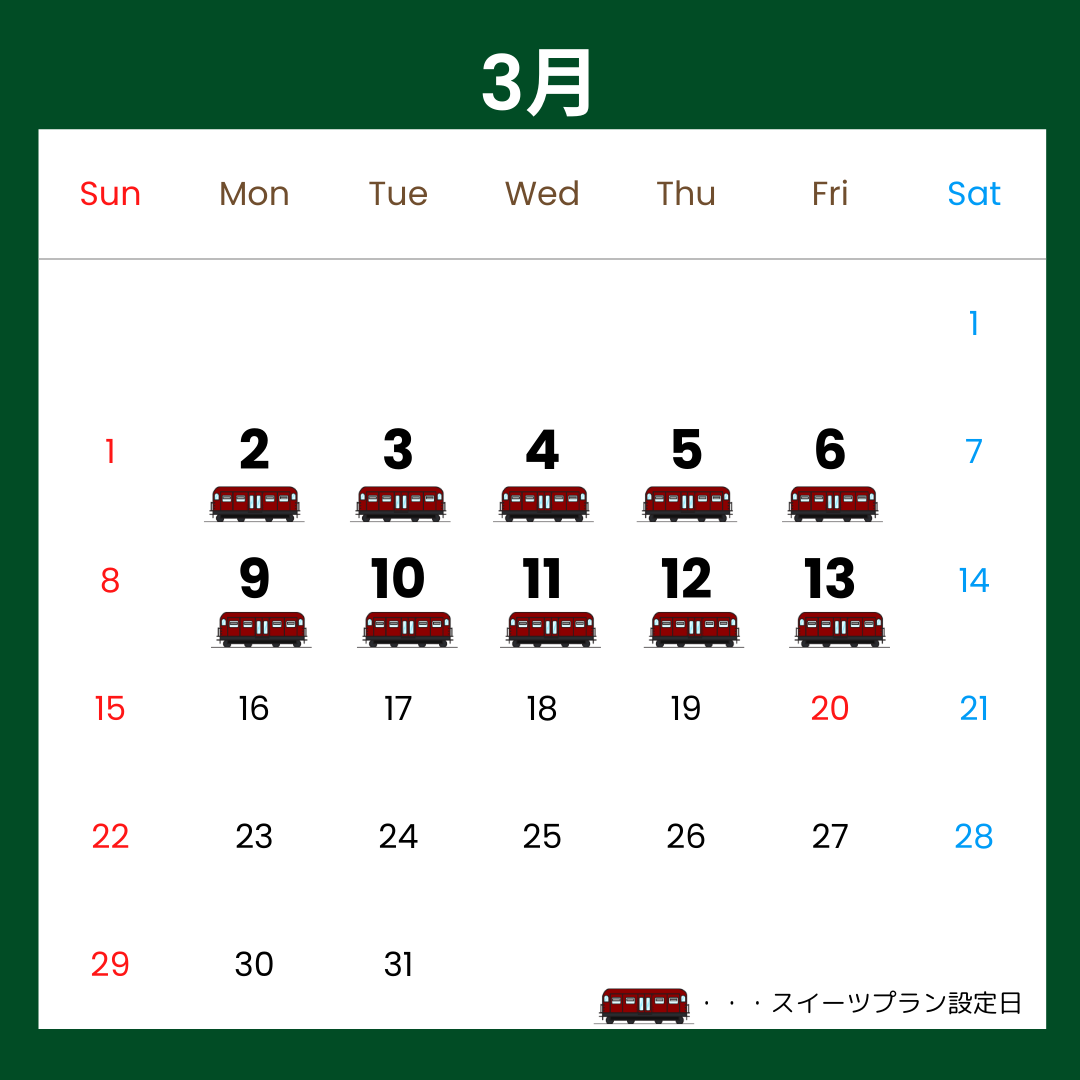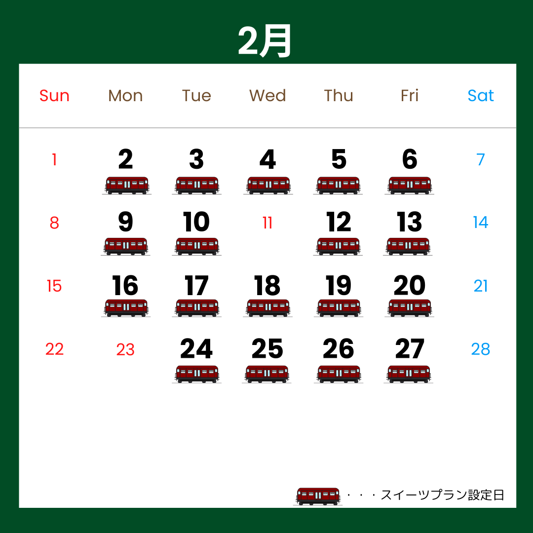 スイーツプランの再開時期が決まり次第、当社ホームページにてお知らせいたします。