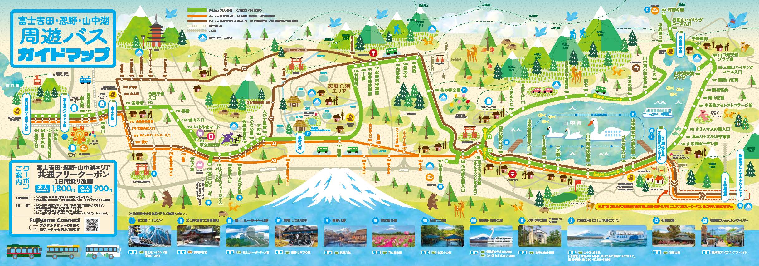 富士吉田・忍野・山中湖周遊クーポン(1 Day Pass)