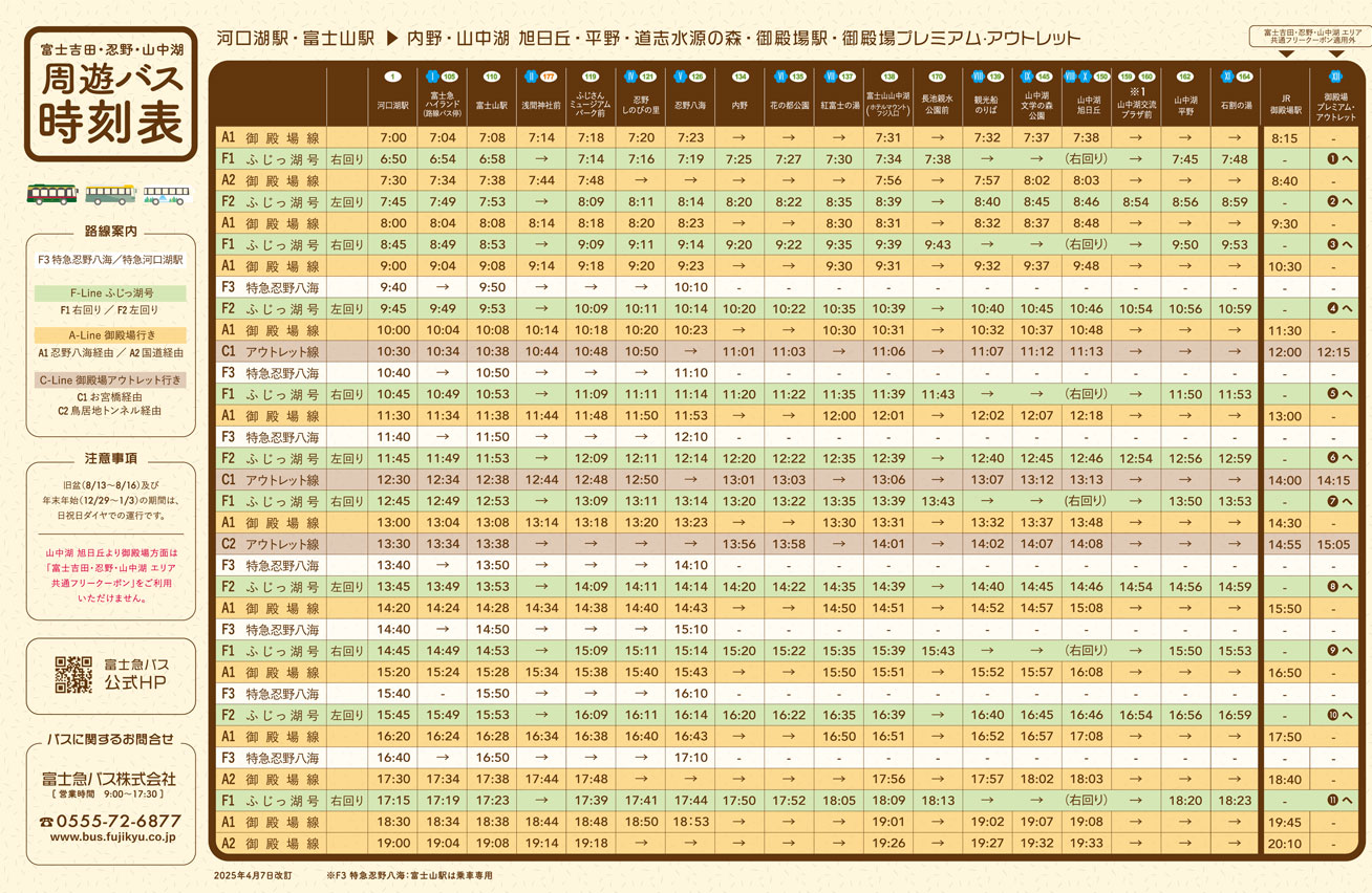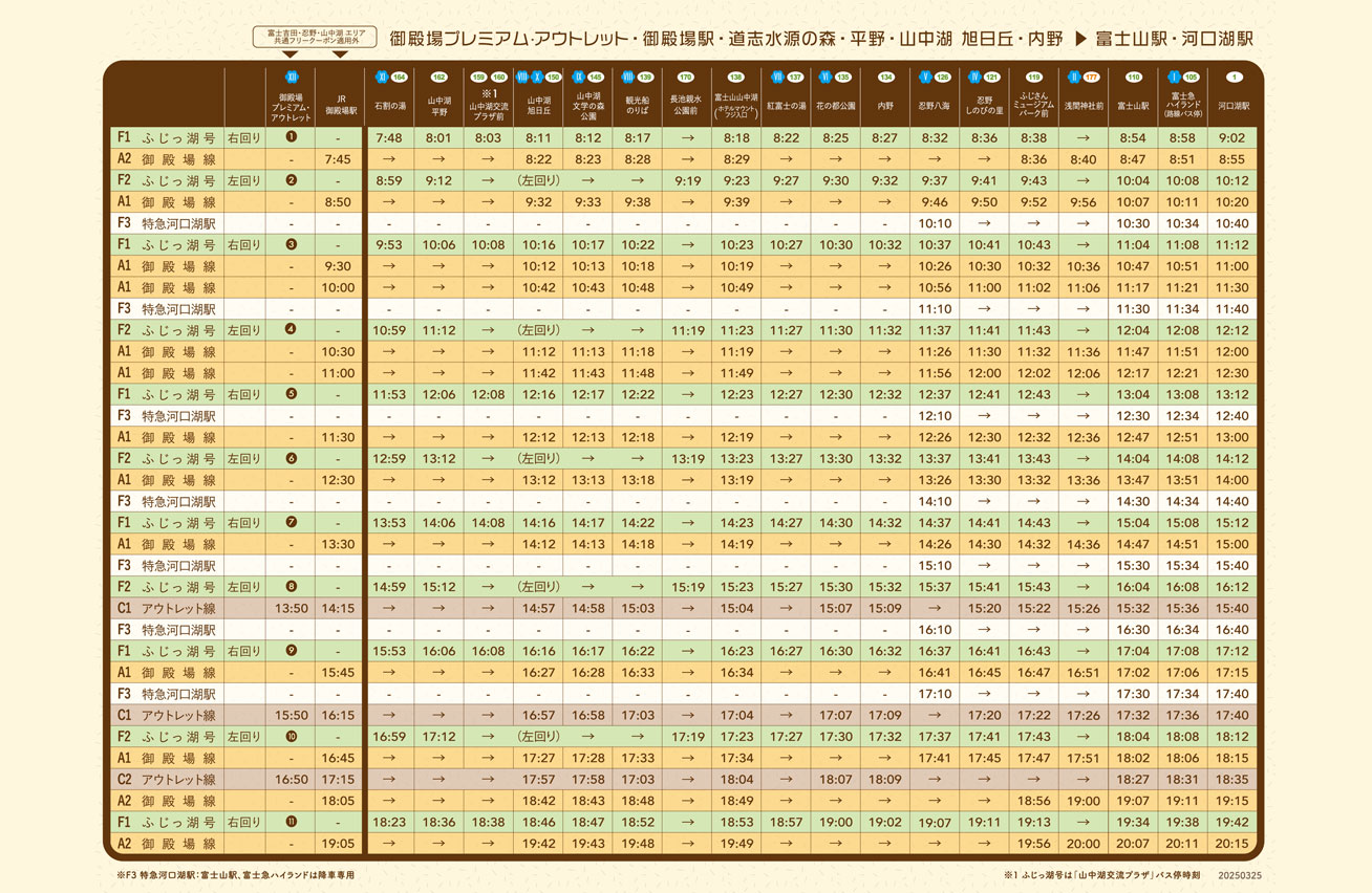 富士吉田・忍野・山中湖 時刻表