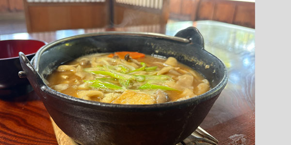 昔ながらの素朴であったかいお店。馬肉、キャベツがのった伝統的な吉田うどんが食べられます。味噌ベースの出汁が甘い馬肉と相まって優しい味のうどんです。
