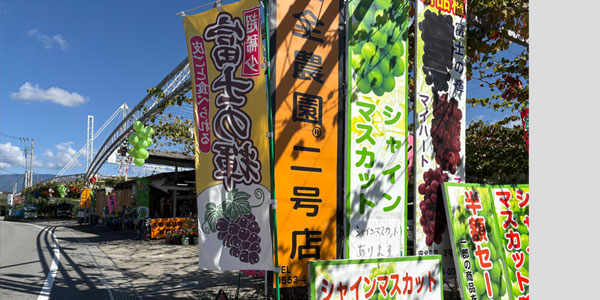 「安全農園2号店」は、シーズン中、時期をずらして15種類以上のぶどう狩りができる観光農園です。「桃食べ放題」は8月中旬まで、「ぶどう狩り」は10月下旬までお楽しみいただけます。