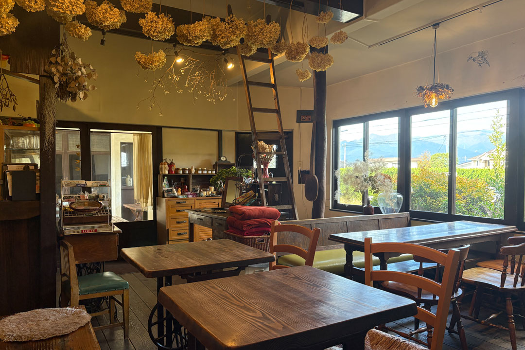 江戸時代末期 文久元年(1861年)に建てられた住宅を、正確に復原した「小佐野家復原住宅」。歴史の面影を残しつつ、和モダンな雰囲気で落ち着きのあるカフェへ一新。店内は、壁一面ガラス張りの開放的な空間が広がり、季節折々の自然を眺めながら、地の食材を使用したカフェメニューをご堪能いただけます。