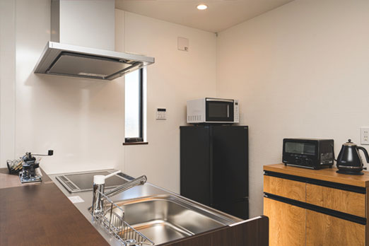 お部屋のキッチンで地域食材の料理も新しい旅の楽しみ。