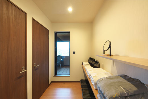 完全プライベート空間でゆったりと過ごせる「一棟貸しヴィラ」。富士山と夜空が一望できるテラス。富士吉田の街に溶け込むように設計されたヴィラは、長期滞在でも寛げるよう自宅のような使い勝手の良さを追求しました。