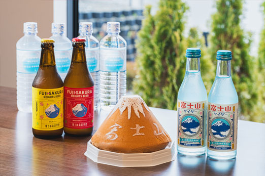 富士山シフォンケーキ・地ビール・山梨県産の水・富士山サイダー・地元のコーヒー豆・ドリップコーヒー・テ ィーバッグ(お茶・紅茶)