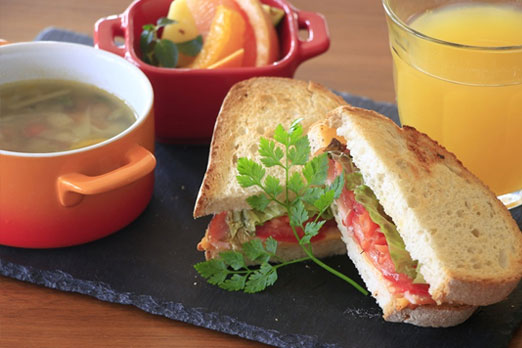 ハムとチーズのカンパーニュサンド/野菜スープ/フルーツの盛り合わせ