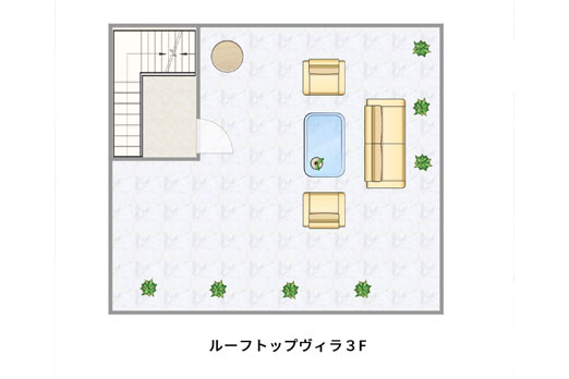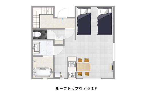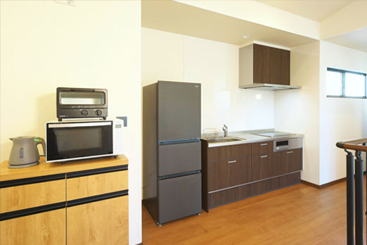 完全プライベート空間でゆったりと過ごせる「一棟貸しヴィラ」。富士山と夜空が一望できる広々とした屋上。富士吉田の街に溶け込むように設計されたヴィラは、長期滞在でも寛げるよう自宅のような使い勝手の良さを追求しました。