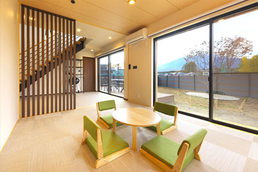 一棟一棟独立したヴィラですので、周囲を気にせずリラックスしてお過ごしいただけます。ヴィラ内では窓を大きく配し、四季折々の富士山の表情、自然をお楽しみいただけます。