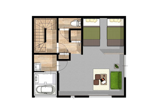 皆さまで眺望をお楽しみいただけるリビングルームと、3つのベッドルーム、1つの和室をご用意。共有・プライベートのスペースを両立しています。バルコニーからは、富士山と街の夜景が一望できます。